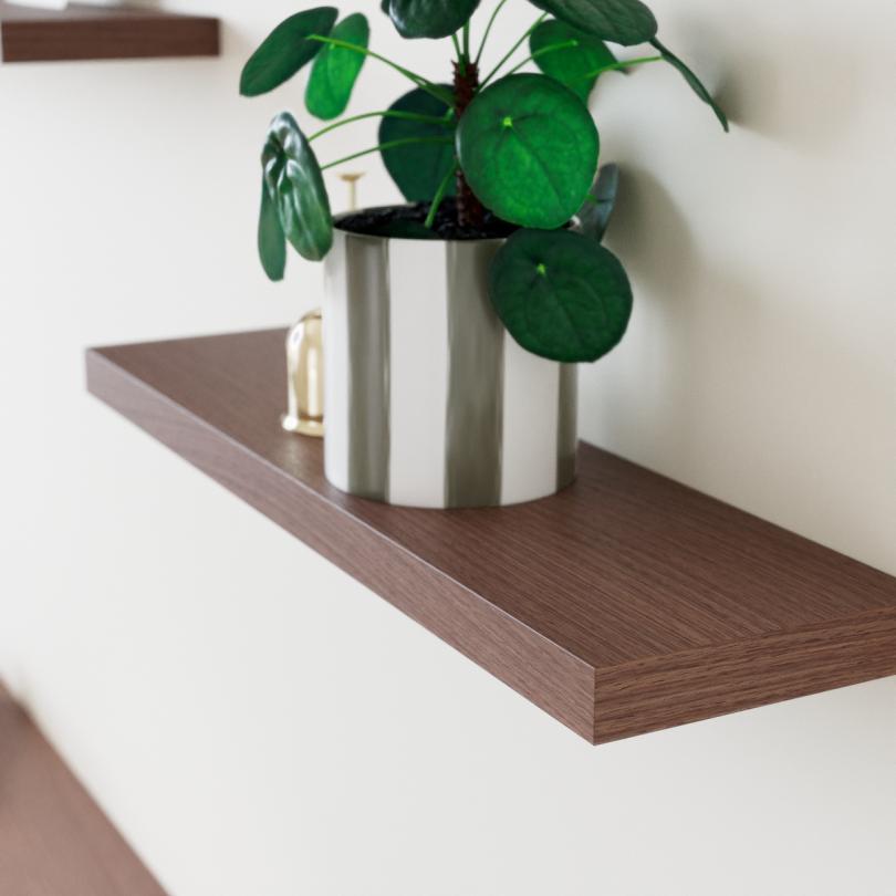 Schwebendes Wandregal mit unsichtbaren Befestigungen und zwei rechten Winkeln.
