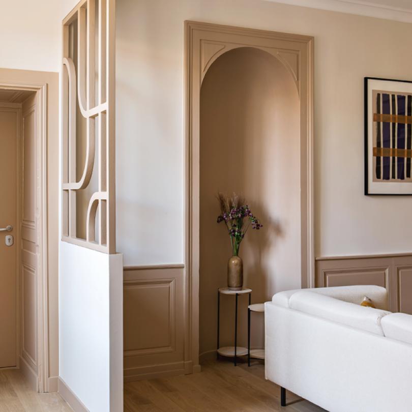 Unsere Wandfarbe wird in zwei Schichten aufgetragen. Die Anwendung unserer weißen oder getönten Grundierung sorgt für eine bessere Haftung und Haltbarkeit im Laufe der Zeit.
