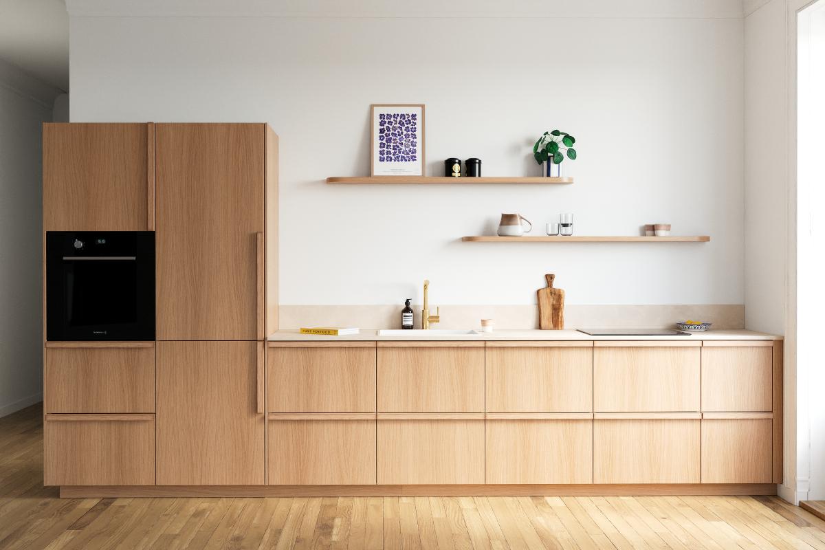 Griff aus massivem Eichenholz, vertikal oder horizontal anzubringen, um grafische Linienmuster zu schaffen. Goldene Honigfarbe. Erhältlich in 6 Größen.