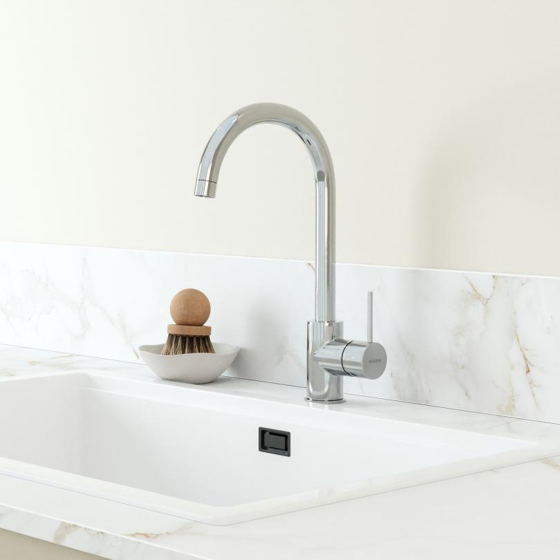 Armatur aus verchromtem massivem Messing, perfekt auf unsere Griffe abgestimmt.