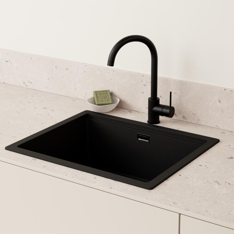 Cuve en matériau composite alliant 75% de quartz et 25% de matériaux recyclés. Surface parfaitement lisse et douce au toucher.